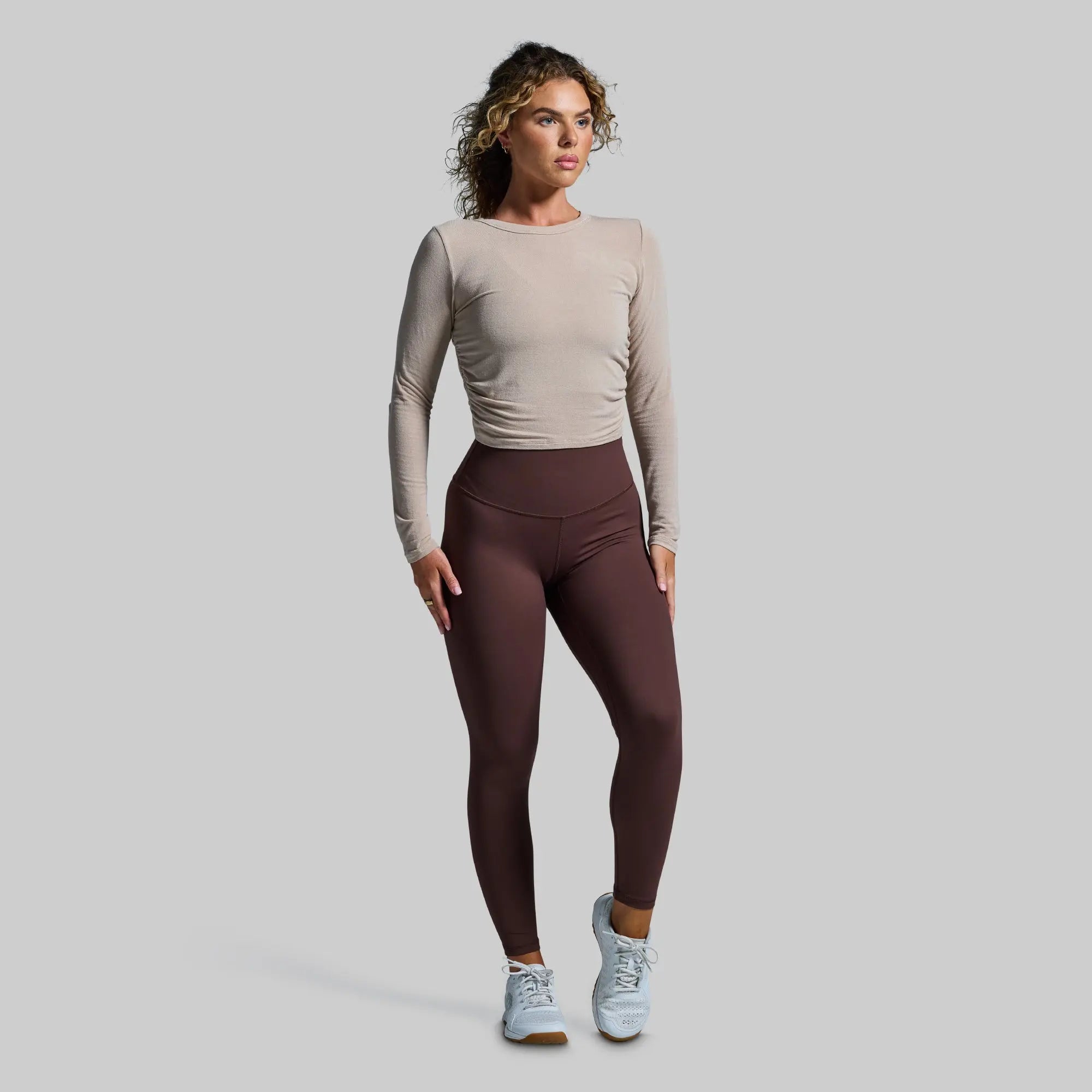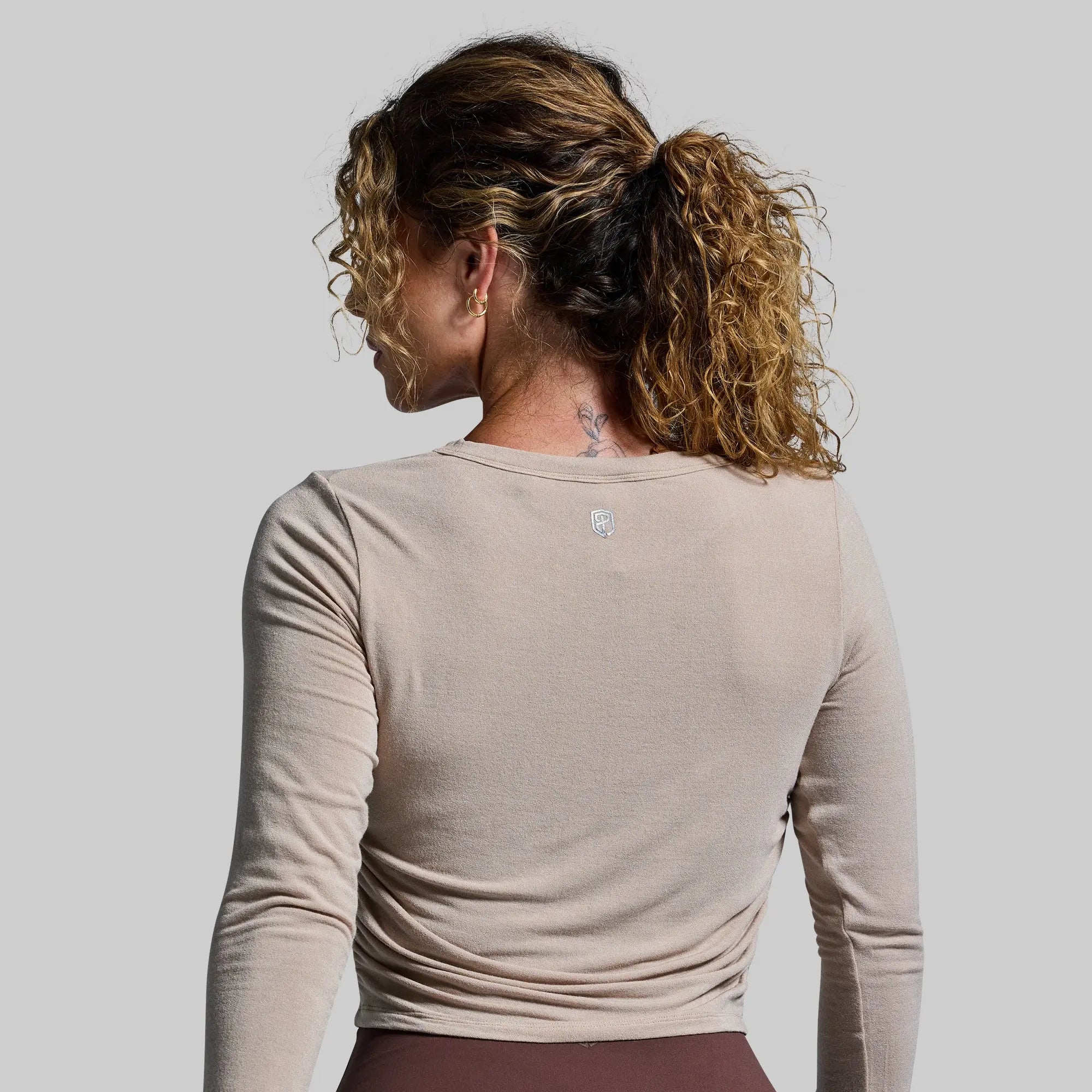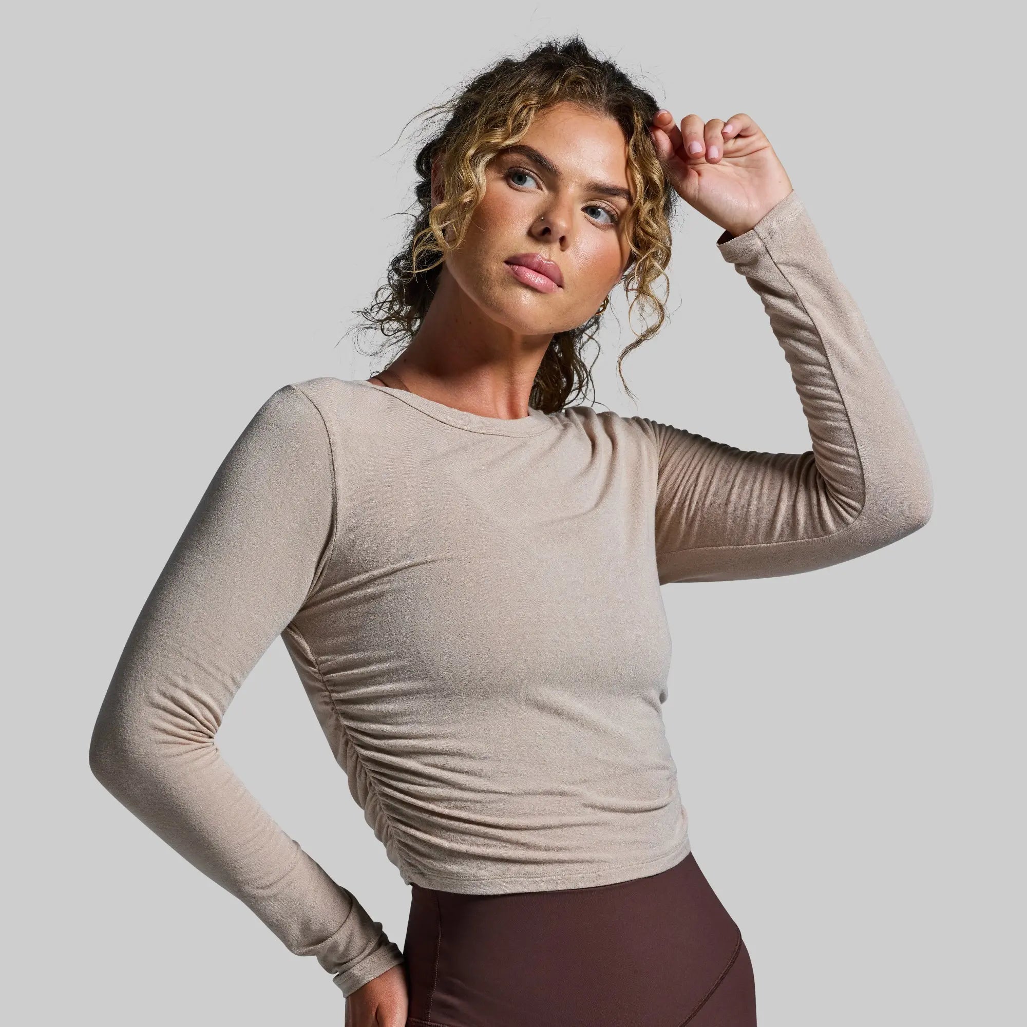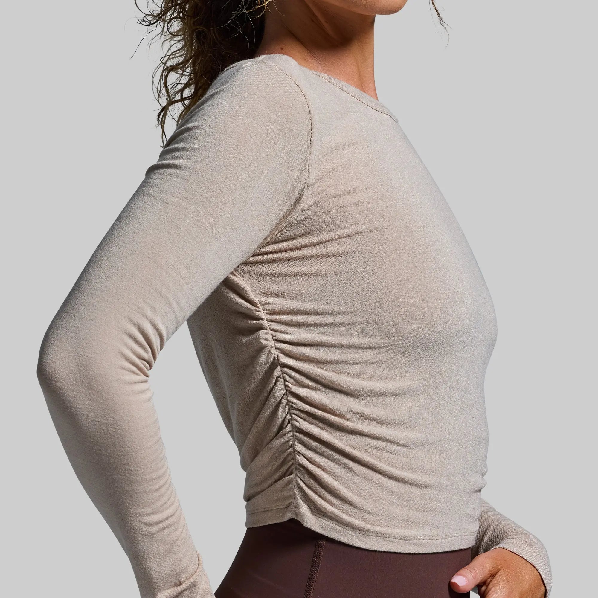"Gone are the days of wearing thick long sleeves that leave you working up a sweat before your workout even begins. Thanks to the breathable fabric, our Look At Me Long Sleeve keeps you cool and comfortable no matter how demanding the WOD. Plus, with flattering ruched sides and laidback styling, it seamlessly doubles as an everyday shirt for casual outings."