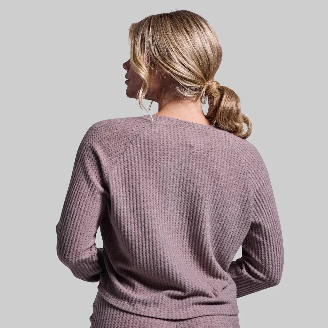 "This is the long sleeve you daydream about changing into at the end of the day. Made from an unbelievably plush and cozy fabric, our R and R Waffle Long Sleeve was designed for next-level comfort. And with a flattering v-cut neckline, it’ll have you saying “I’m never taking this off” from day one. Dreaming of a matching set? That’s exactly why we made our R and R Waffle Lounge Pant."