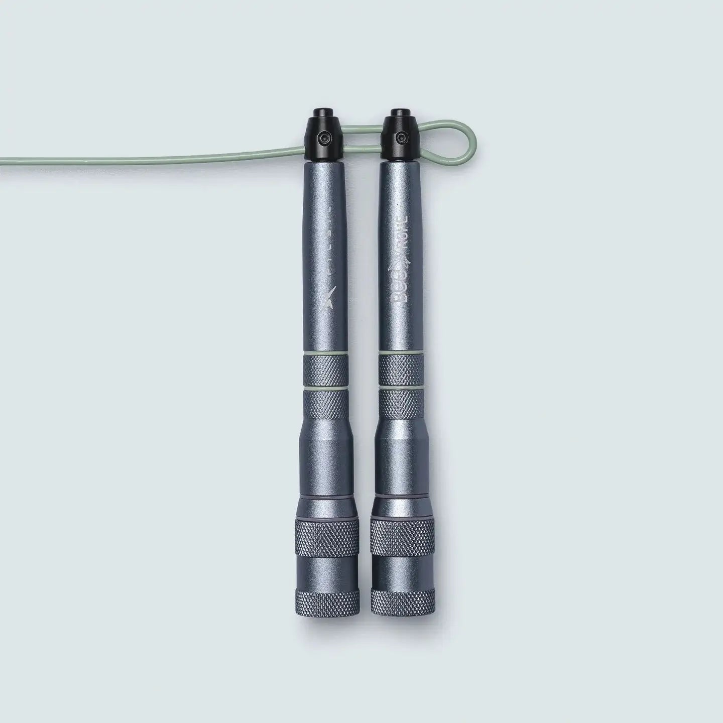 Dette er nyeste utgave av manges favoritthoppetau Bee Jump Rope som er laget i aluminium, har dobbelt lager, og er det eneste hoppetauet i verden med selvjusterende camber. Denne oppgraderte versjonen av Bee Jump Rope kommer med O-ringer for bedre grep, samt et enda mer ergonomisk design for perfekt utførelse av dine double unders. Hoppetauet er fremdeles like ekstremt raskt og lett!