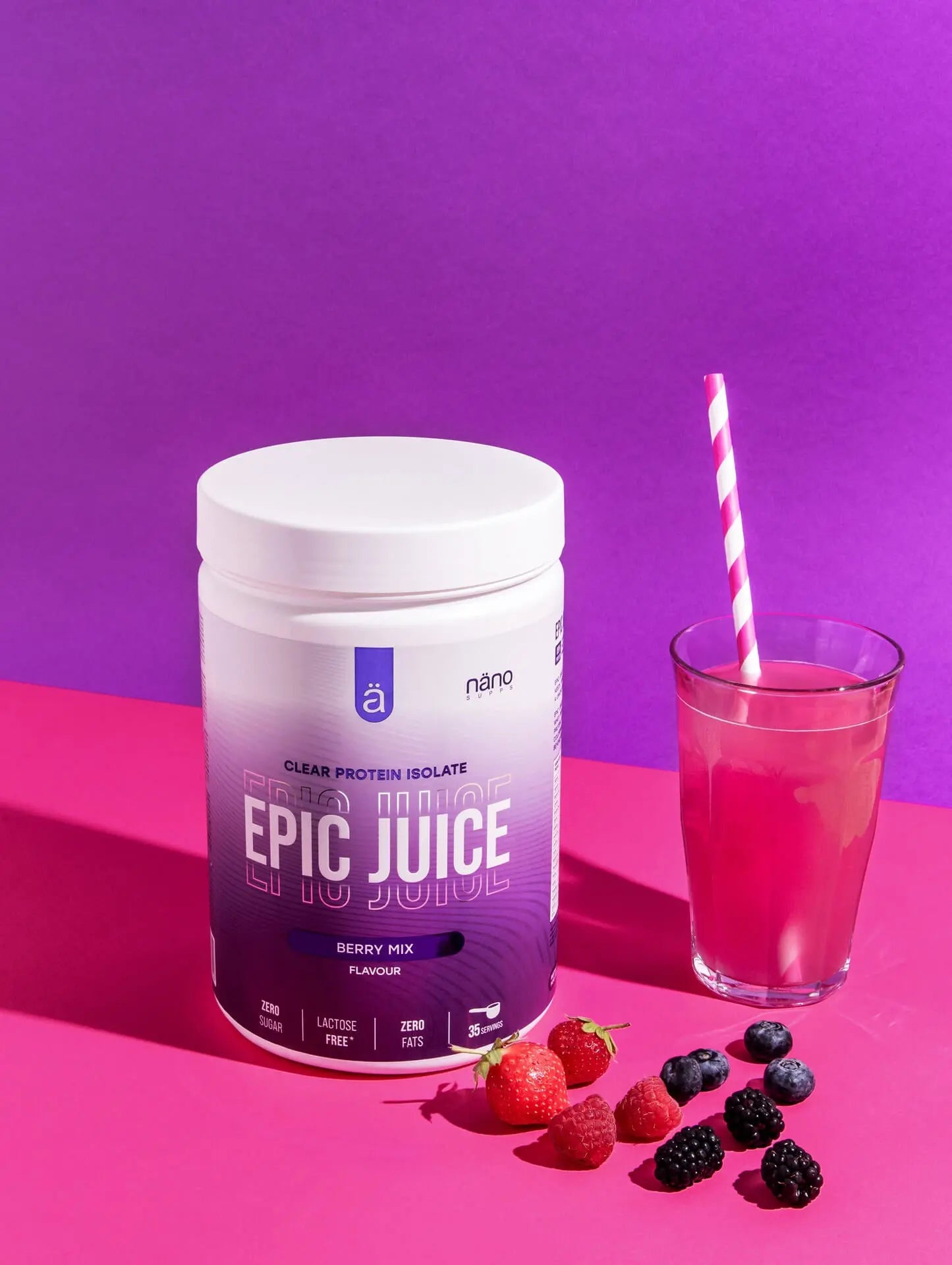 Denne proteinjuicen er kulminasjonen av en langvarig produktutvikling. Näno Supps har søkt etter det perfekte proteinisolat og de har klart å utviklte et produkt som ikke går på kompromiss med hverken smak eller innhold. Epic Juice vil ta deg inn i et nytt univers av syrlige proteinblandinger med et høyt innhold av protein. Det høres kanskje for godt ut til å være sant, men du får en ordentlig dose protein og ingen sukker eller fett! Näno Supps tilfredsstiller dine behov uavhengig av om du har planer om å øke muskelmassen, bevare muskelmassen og/eller miste fett.