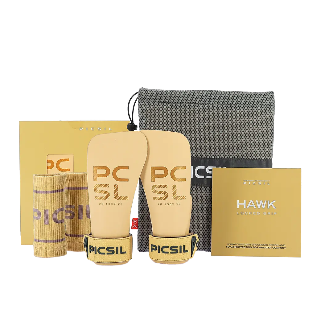 This product includes: Grips without magnesium Hawk Grips by PicSil, cotton wrist straps and breathable anti-mildew mesh bag.