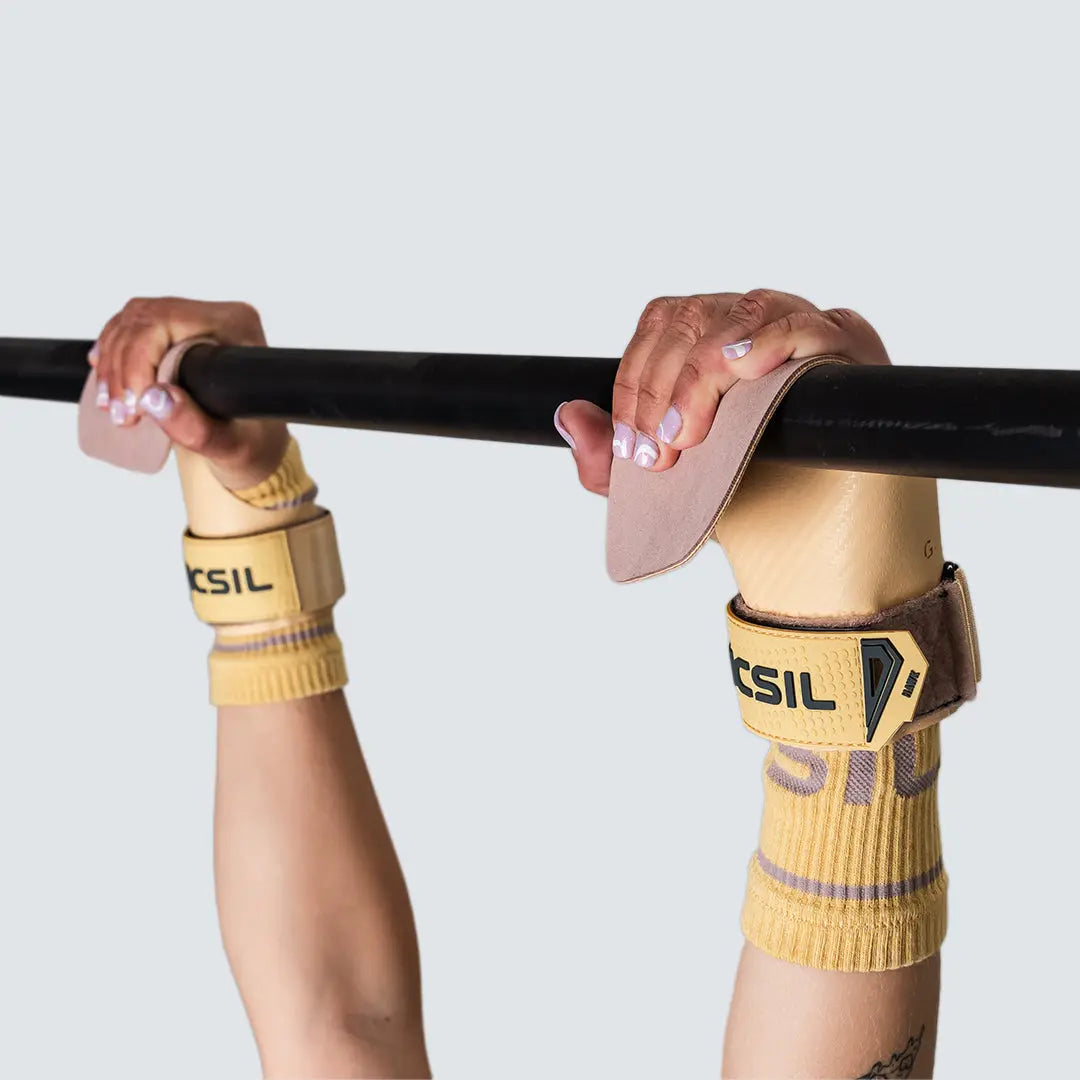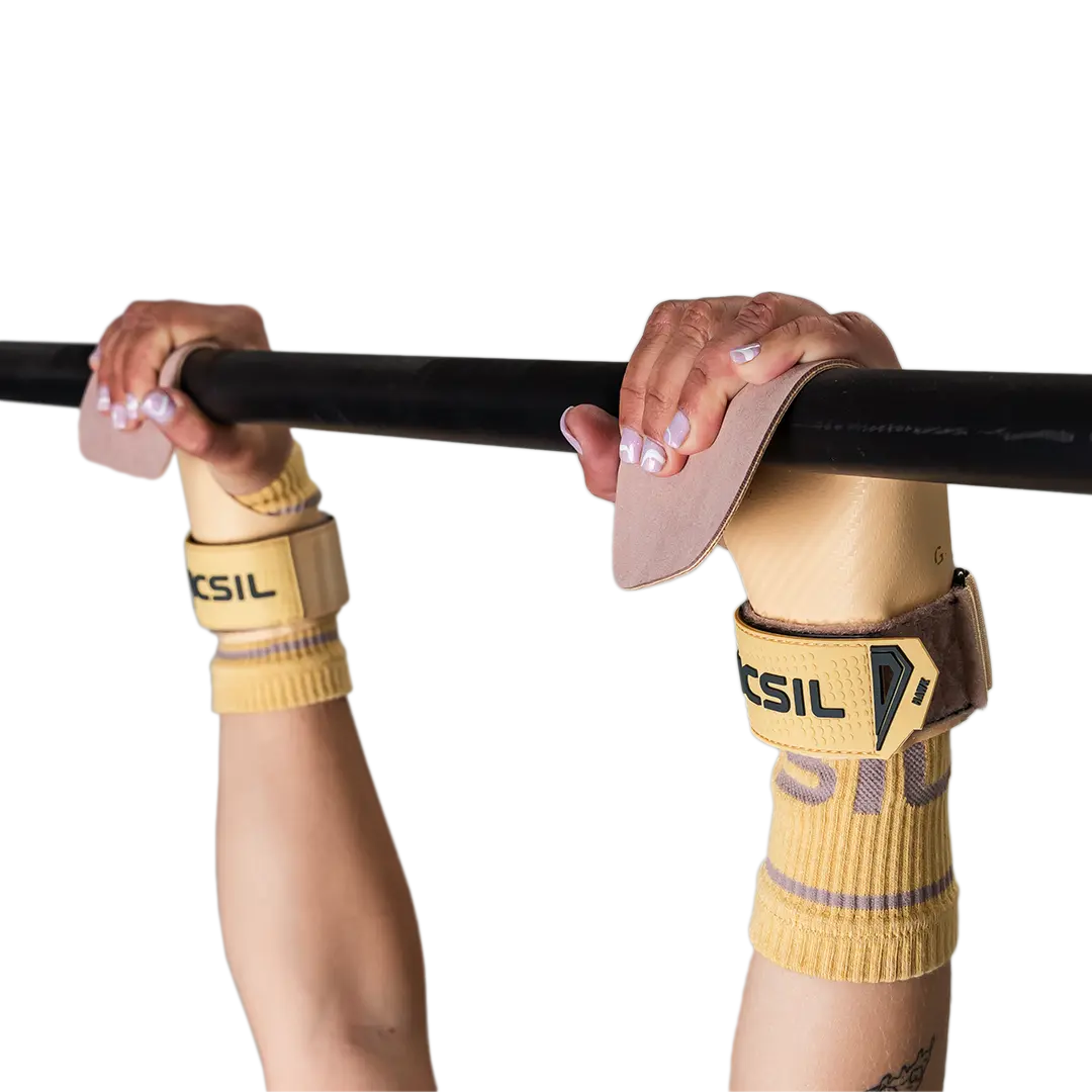The Hawk magnesium-free Grips has a reinforced reinforcement on the outside of the palm of the handpalm, which protects your hands in specific exercises such as Ring muscle ups.